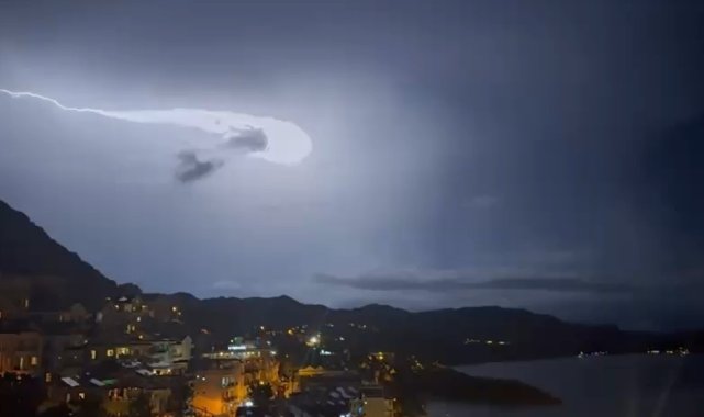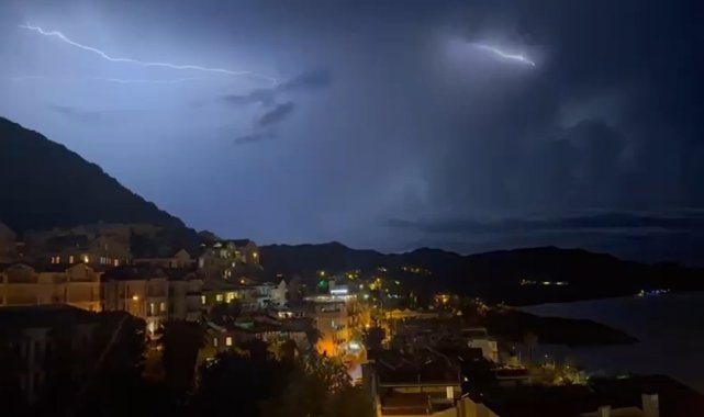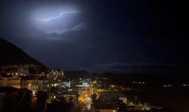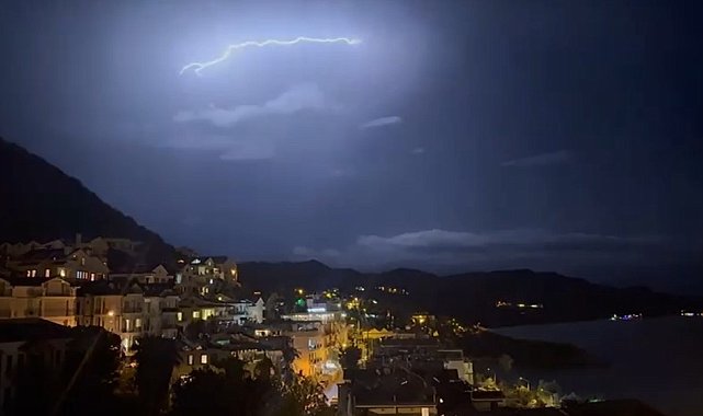 Meteoroloji Genel Müdürlüğü'nün Antalya çevresi için yaptığı kuvvetli yağış ve yıldırım uyarısının ardından Kaş ilçesinde çakan şimşekler gökyüzünü aydınlatarak adeta geceyi gündüze çevirdi.