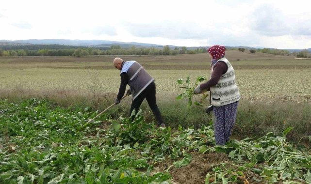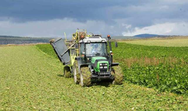 Kastamonu'da kuraklığa rağmen sulama sistemleri sayesinde üretim yapabilen pancar üreticileri, bir dönüm alandan 5 ton ürün elde etti.