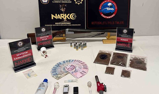 Kastamonu'da polis ekipleri tarafından gerçekleştirilen iki farklı uyuşturucu operasyonunda 6 kişi gözaltına alındı.Edinilen bilgiye göre, Kastamonu İl Emniyet Müdürlüğü Narkotik Suçlarla Mücadele Şube Müdürlüğü ile Asayiş Şube Müdürlüğüne bağlı Motosikletli Polis Timleri tarafından gerçekleştirilen 2 farklı uyuşturucu operasyonunda, 114,20 gram bonzai, 0,83 gram A.M. bonzai ham maddesi, 10 adet sentetik ecza hapı, 1 adet hassas terazi, 3 adet uyuşturucu madde kullanımında kullanılan cam düzenek, uyuşturucu madde seyreltmede kullanılan 120 mililitre aseton, 1 adet ruhsatsız yivsiz av tüfeği ve bu tüfeğe ait 9 adet kartuş, 2 adet tarihi eser niteliği taşıyan obje, suçtan elde edildiği değerlendirilen 5 bin 595 TL para ele geçirildi.2 operasyonda 6 şüpheli gözaltına alındı. Şüphelilerin işlemlerinin devam ettiği öğrenildi.
