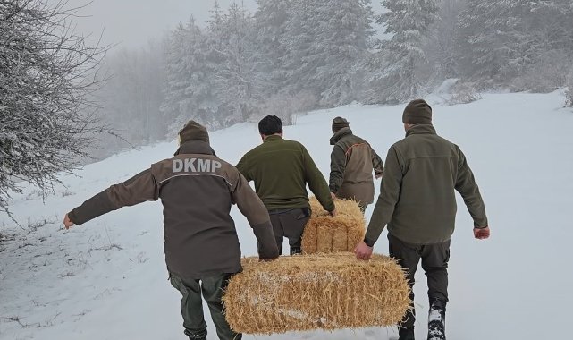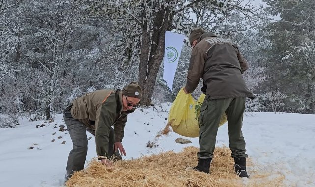 Kastamonu Doğa Koruma ve Milli Park Müdürlüğü ekipleri, yaban hayvanları için doğaya yem ve yiyecek bıraktı.