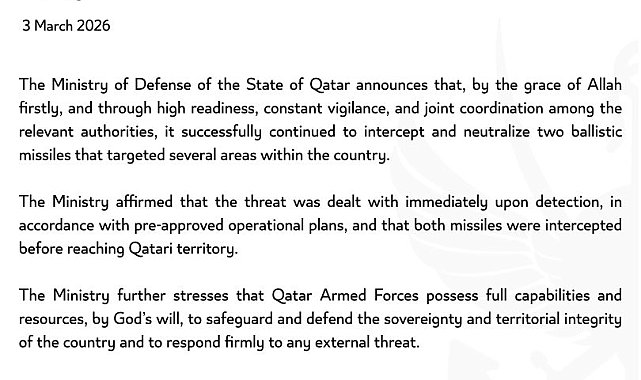 Katar Savunma Bakanlığı: "2 balistik füze daha engellendi"