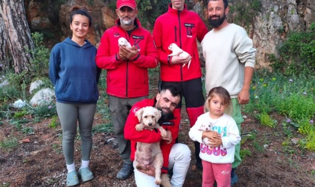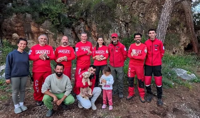 Antalya'nın Kumluca ilçesinde karavanları ile kamp yapan ailenin Latte isimli köpeğinin 6 yavrusu yağmurdan ıslanmamaları için bırakıldıkları alanda fark edilmeyen bir yarığa düştü. Ailenin sosyal medyadan yardım çağrısına yetişen arama kurtarma ekipleri 6 yavruyu yaklaşık 20 metrelik ve bir insanın girebileceğinden dar alandan film gibi operasyonla kurtardı.Kumluca'nın Mavikent Mahallesi Korsan Koyu yakınlarında meydana gelen olayda 'Evimiz Tekerlek' olarak sanal medyada tanınan Bülent Ovacıkaşı ve ailesi karavanı ile hafta sonu kamp yapmak için bölgeye geldi. Yanlarında Latte isimli köpekleri ve 6 yavrusu bulunan aile yağışın başlaması ile birlikte yavruların ıslanmaması için yavrularını karavana yakın bir noktada bulunan kayalık alandaki oyuğa bıraktı. Ancak küçük yavrular oyuk içerisinde bulunan ancak çöpler atılan çöpler nedeniyle görülmeyen bir yarığa düştü.Yardıma arama kurtarma ekibi yetiştiGirişi dar ve kaya parçası ile kapalı olan yaklaşık 20 metre derinliğindeki yarık içerisinde mahsur kalan ve çıkamayan yavrulara ulaşmaya çalışan Bülent Ovacıkaşı'nın çabaları yetersiz kaldı. Önce yavruların annesini yanlarına göndererek çıkarmayı deneyen Bülent Ovacıkaşı'nın girişimleri sonuçsuz kalınca İtfaiye ve AFAD ekiplerinden yardım istedi. Ancak ekipler girişin bir insanın sığabileceği genişlikte olmaması nedeniyle yapabilecekleri bir şey olmadığını söyledi. Bunun üzerine sosyal medya hesaplarından çektiği videoyu paylaşan Bülent Ovacıkaşı'nın yardımına AKUT ve Kırmızı Kasklılar Arama Kurtarma Derneği yetişti.2 saatlik operasyonla 6 yavru kurtarıldıOvacıkaşı'nın sosyal medya paylaşımını gören arama kurtarma ekipleri 120 kilometrelik yolculuğun ardından yarık içerisinde mahsur kalan 6 yavruyu kurtarmak için çalışma başlattı. Gerekli güvenlik önlemlerini alan kurtarma ekipleri ilk olarak yarığın dar olan girişini hilti yardımıyla genişletti. İş makinesi ile genişletilen yarık içerisine giren ve dar alanda güçlükle ilerleyen kurtarma görevlisi bir süre sonra yavru köpeklere ulaşmayı başardı. Yaklaşık 2 saatlik kurtarma operasyonu sonunda AKUT ve Kırmızı Kasklılar Arama Kurtarma Derneği üyeleri yavruları mahsur kaldıkları yarık içerisinde kurtararak annesine ve sahiplerine teslim etti.