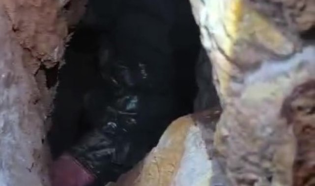 Kaya içerisindeki yarığa düşen 6 yavru köpek için film gibi kurtarma operasyonu