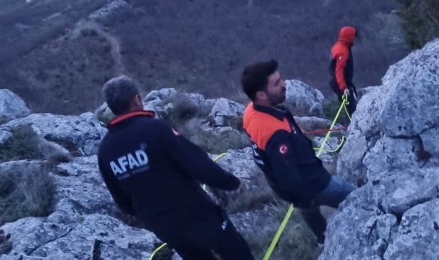 Yozgat'ın Aydıncık ilçesine bağlı Dereçiftlik köyünde, sarp kayalıklarda mahsur kalan keçi arama kurtarma ekiplerinin çalışmasıyla kurtarıldı.