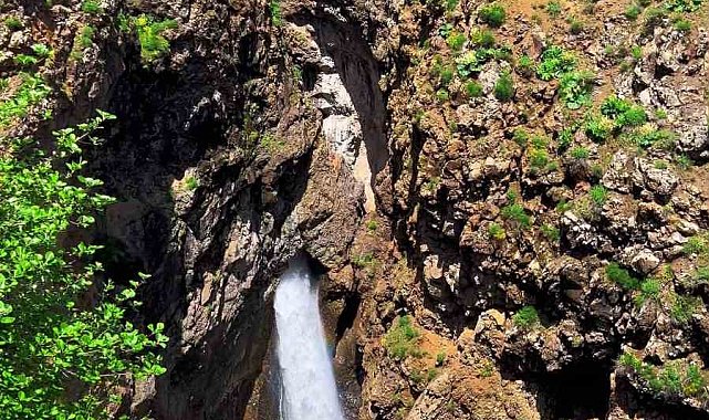 Bingöl'ün Solhan ilçesinde kayayı oyarak süzülen doğa harikası şelale, görenleri kendine hayran bırakıyor.