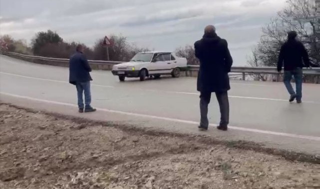 Isparta'nın Eğirdir ilçesinde kaygan yolda art arda meydana gelen kazaları izlemek için otomobilinden inen kadın, bir aracın çarpması sonucu yaralandı. Kadın hastaneye kaldırılırken, takla atan otomobildeki bir vatandaş kaza anını cep telefonuyla kaydedip gülerek anlattı.Kaza, saat 11.30 sıralarında Eğirdir ilçesi Mahmatlar köyü yolu üzerinde meydana geldi. Edinilen bilgilere göre, plakası ve sürücüsü henüz tespit edilemeyen Volkswagen marka otomobil, kaygan yolda kontrolden çıkarak yol kenarına savruldu. Araçtan inen yolcular Ali Ü. ve eşi Nuriye Ü., yardım beklemek için yol kenarına geçti.Saniyeler içinde üç araç daha kaza yaptıKazanın ardından saniyeler içinde aynı yönden gelen Murat Y. yönetimindeki 60 NH 112 plakalı Volkswagen marka hafif ticari araç, virajı alamayarak takla attı. Arkadan gelen plakası öğrenilemeyen bir Fiat Tofaş marka otomobil ise kayarak bariyerlere çarptı. Bu sırada aynı yönde ilerleyen Murat B. (62) yönetimindeki 07 ARF 762 plakalı Dacia marka otomobil de kontrolden çıkarak, yol kenarında kazayı izleyen Nuriye Ü.'ye (59) çarptı. Çarpmanın etkisiyle Nuriye Ü. ağır yaralandı. 112 Acil Çağrı Merkezi'ne yapılan ihbar üzerine olay yerine polis ve sağlık ekipleri sevk edildi. Sağlık ekiplerince yapılan kontrollerde kazada yalnızca yaya Nuriye Ü.'nün yaralandığı belirlendi. İlk müdahalesi olay yerinde yapılan Nuriye Ü., ambulansla hastaneye kaldırıldı.Kazayı gülerek anlattıKazada cep telefonuyla takla attığı anları kaydeden bir vatandaş, kazanın etkisiyle gülerek, "Ben şuradan kayarak geldim ve sonra takla atarak kaza yaptım. Arkamdan gelen adam da kaydı ve toplam üç araç birden kaza yaptık. 30 kilometre hızla gidiyordum" dedi.Kazalarla ilgili inceleme başlatılırken, ağır yaralı olarak hastaneye kaldırılan Nuriye Ü.'nün hayati tehlikesi olduğu bildirildi.