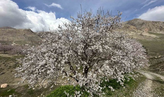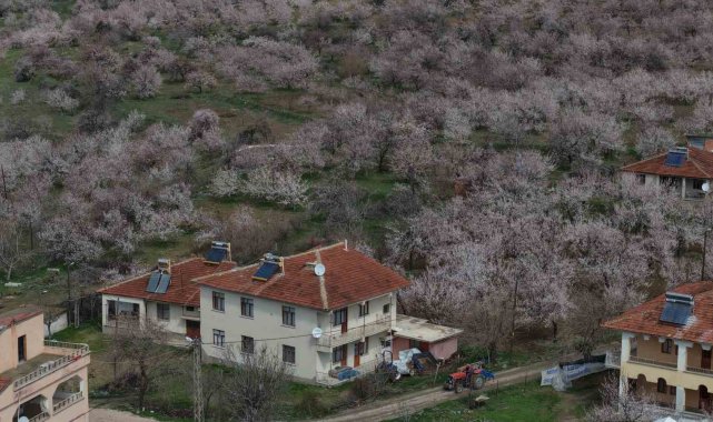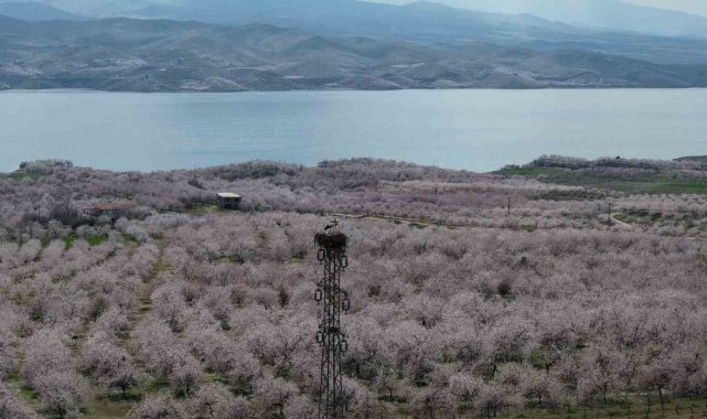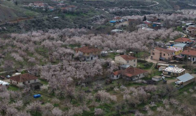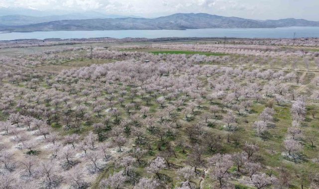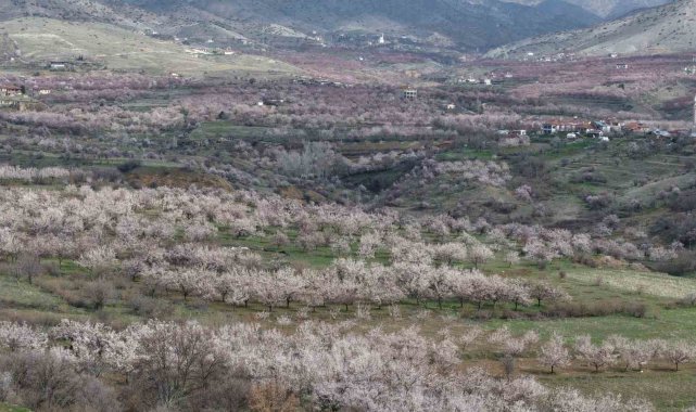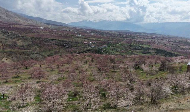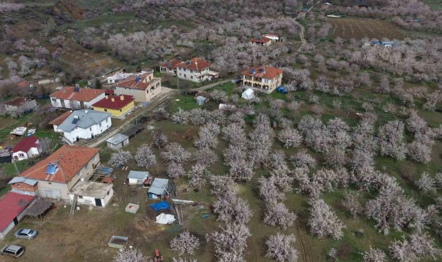 Baskil'de kayısı bahçeleri çiçek açtı, beyaza bürünen ağaçlar havadan görüntülendi. Geçen yıl don olayında zarar gören üreticiler bu sezon hasada umutla bakıyor.