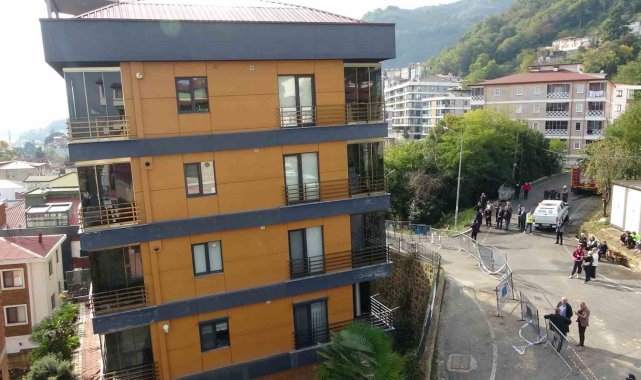 Ordu'da, temel kazısı sonrasında zeminindeki kayma nedeniyle çatlaklar oluşan ve yana eğilen binada yıkım için hazırlık çalışması başlatıldı.