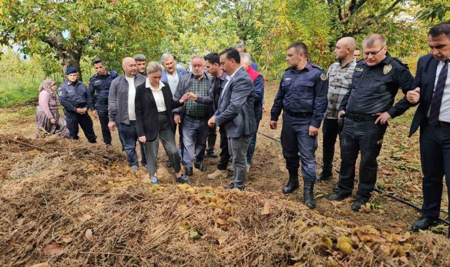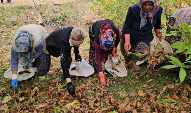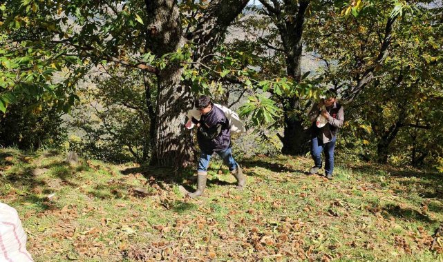 Türkiye'nin kestane üretiminde ilk sıralarda yer alan Aydın'ın Nazilli ilçesinde kestane hasadı yapıldı. İlçe Kaymakamı Huriye Küpeli Kan başta olmak üzere ilçe protokolünün de katıldığı bin 300 rakımlı Kaşıkçılar Mahallesi'nde düzenlenen hasat renkli görüntülerle gerçekleştirildi.Nazilli Kaymakamlığı ve İlçe Tarım ve Orman Müdürlüğü tarafından organize edilen etkinliğe ilçe protokolü, mahalle muhtarları ve mahalle halkı yoğun ilgi gösterdi. Kaşıkçılar Mahalle Muhtarı Muhammet Çobanoğlu ve mahalle halkının ev sahipliğinde gerçekleştirilen kestane hasadına Nazilli Kaymakamı Huriye Küpeli Kan, İlçe Emniyet Müdürü Erdal Esen, İlçe Jandarma Komutanı Yüzbaşı Ahmet Refik Özsoy, İlçe Tarım ve Orman Müdürü Sunay Güler, İlçe Milli Eğitim Müdürü İsmail Şimşek, Nazilli Kaymakamlığı Sosyal Yardımlaşma ve Dayanışma Vakfı Müdürü Ahmet Çevikçelik, Nazilli Orman İşletme Müdürü Hüseyin Devrim Karasulu, çok sayıda kurum personeli ile Çatak Muhtarı Mehmet Bilici, Kuşçular Muhtarı Ramazan Kömürcüoğlu, Yukarı Örencik Muhtarı Hasan Özkaya, Apaklar Muhtarı Mehmet Apak, Aşağı Örencik Muhtarı Mükremin Karakurt ve Hasköy Muhtarı Mehmet Cırcır katıldı. Protokol üyeleri, çalışanlarla önce kahvaltı yaptı ardından da kestane hasadına destek verdi.Bin 300 rakımda zorlu hasat mesaisiNazilli'nin en yüksek rakımlı mahalleleri arasında yer alan Kuşçular Mahallesi kırsalında gerçekleştirilen hasat önce çırpma işlemi ile başladı. Ardından ağaçtan düşürülen kestaneler kadın işçiler tarafından toplanarak çuvallara dolduruldu. Mahallenin gençlerinin zorlu arazide taşıyarak köye ulaştırdığı kestaneler özel kuyulara alındı. Üzerleri örtülen dışında dikenli kabuk bulunan kestanelerin 15 gün süre ile bekletilmelerinin ardından tekrardan kuyulardan çıkartılarak patoz yardımıyla kabuklarından ayrılıp satışa sunulacağı ifade edildi.Zorlu mesaiye ilçe protokolünden moral desteğiDağların zirvelerinde büyük emeklerle gerçekleştirilen kestane hasadının zor ve meşakkatli olduğunu ifade eden Nazilli Kaymakamı Huriye Küpeli Kan: "Nazilli'nin yaklaşık 20 mahallesinde kestane hasadı sürüyor. Hasatta kadınlarımızın da büyük emeği var. Neredeyse 10 asra dayanan yaşamları ile kestane ağaçları bereketini halkımızla paylaşmaya devam ediyor. Bu dağlarımızda Türkiye'nin en önemli ürünleri arasında yer alan incir ve zeytinin yanısıra kestanemiz de önemli bir gelir kaynağı. Arazi yapısı nedeniyle zor ve meşakkatli bir çalışma yapılıyor. Herkesin emeğine sağlık diyorum" dedi.10 asırlık ağaçlarda hasatKestane hasadında önemli rol üstlenen kadınlar da Kaymakam Kan'a ve ilçe protokol üyelerine desteklerinden dolayı teşekkür etti. Mahalle sakinlerinden Cemile Kaşıkçı: "Dört mevsim çalışan ve üreten kadınlar olarak her zaman yakın desteğini gördüğümüz hemcinsimiz kaymakam kardeşimize çok teşekkür ediyoruz. Atalarımızın bin yıldan bu yana emek verdiği kestane ağaçlarımız bu yılda bereketi ile ekonomimize can katıyor. Bakımı ve hasadı zor şartlarda gerçekleştirdiğimiz kestanemizden elde ettiğimiz gelirle geçimimizi sağlamaya devam edeceğiz. Sezonumuzun bereketli geçmesini diliyoruz" dedi.