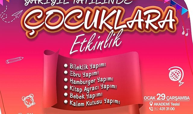 Kayseri Büyükşehir Belediyesi bünyesinde faaliyet gösteren ve şehrin 6'ncı üniversitesi olarak anılan KAYMEK, 2024-2025 Eğitim Öğretim Yılı yarıyıl tatiline özel etkinlikler düzenliyor.Eğitim öğretim yılı boyunca ücretsiz bir şekilde okula destek ve sınavlara hazırlık kursları ile öğrencilerin yanında olan Kayseri Mesleki Eğitim ve Kültür A.Ş. (KAYMEK) tatil dönemlerinde de öğrencileri yalnız bırakmıyor. Bu kapsamda, Büyükşehir Belediyesi KAYMEK tarafından öğrencilerin yarıyıl tatillerini verimli ve keyifli bir şekilde geçirmelerini sağlamak amacıyla yarıyıl tatiline özel etkinlik programı hazırlandı. 29 Ocak Çarşamba günü KAYMEK Akademi Tesisi'nde düzenlenecek etkinlikte, bileklik yapımı, ebru yapımı, kitap ayracı yapımı, oyuncak bebek yapımı workshopu düzenlenecek. Ayrıca, hamburger yapımında gerekli malzemeler ile kalem kutusu yapımında gerekli kavanozların katılımcılar tarafından getirileceği etkinlikte katılımcılar, birbirinden farklı çalışmalara imza atmış olacak.KAYMEK'in 8-12 yaş arasına yönelik etkinliğine kayıt işlemleri www.kaymekonline.com internet adresi üzerinden yapılabilecek.