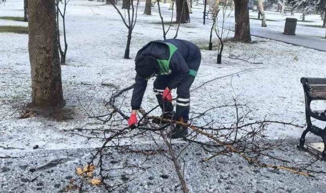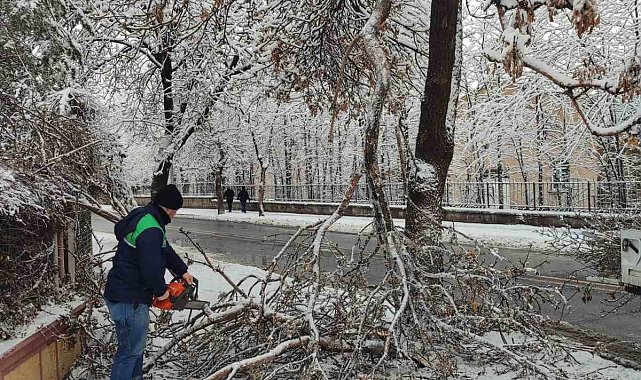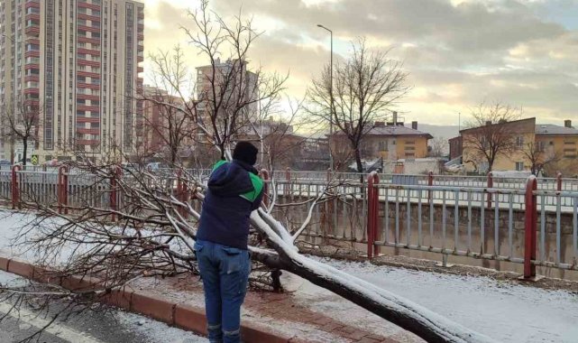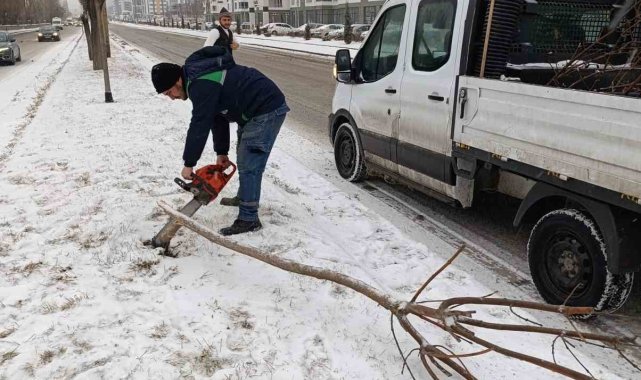 Kayseri Büyükşehir Belediyesi, kar yağışının ardından zarar gören ağaç ve dalların oluşturabileceği risklere karşı şehir genelinde kapsamlı bir çalışma başlatarak, yaya ve araç güvenliğini sağlıyor.