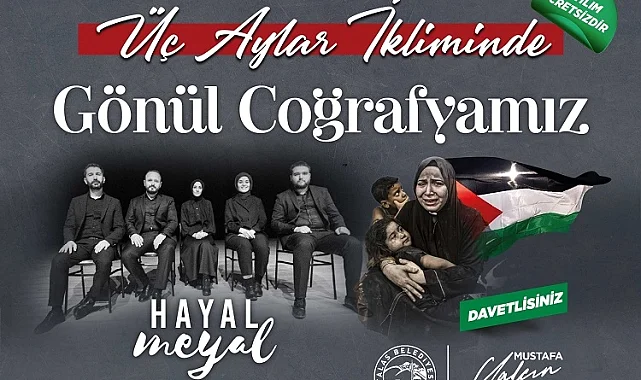 Kayseri Talas Belediyesi tarafından "Üç Aylar İkliminde Gönül Coğrafyamız" isimli maneviyat dolu bir program düzenlenecek.KAYSERİ (İGFA) - Kayseri Talas Belediyesi, Cihannüma Derneği Kayseri Şubesi ve Kayseri Filistin'le Dayanışma Platformu işbirliğiyle düzenlenecek program Kur'an-ı Kerim tilaveti ile başlayacak. Protokol konuşmaları ile devam edecek programda Hayal Meyal grubu tiyatral gösteriyle Gazze'den Bosna'ya, Doğu Türkistan'dan Myanmar'a mazlumların dünyasına yolculuk yaptıracak.