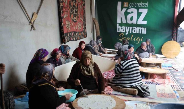 İzmit Eseler köyünde 24 Ocak Cuma günü 4'üncüsü düzenlenecek olan Kaz Bayramı için köydeki kadınlar imece usulü kuru yufka açmak için bir araya geldi.