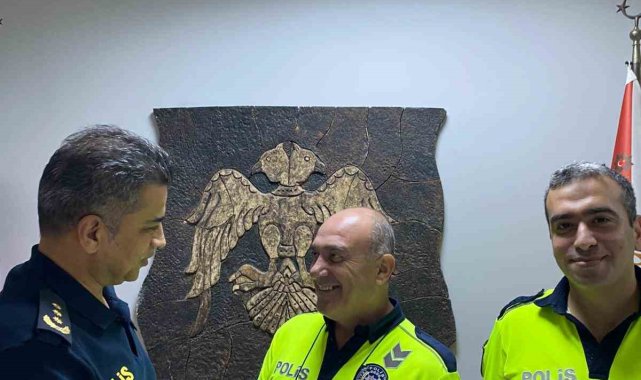 Osmaniye'nin Kadirli ilçesinde kazaya karışan araçların yoldan kaldırılmasının ardından yolu süpürgeyle temizleyen trafik polislerini makamında kabul eden İlçe Emniyet Müdürü Esat Tarık Kahveciler, polis ekibine teşekkür etti.
