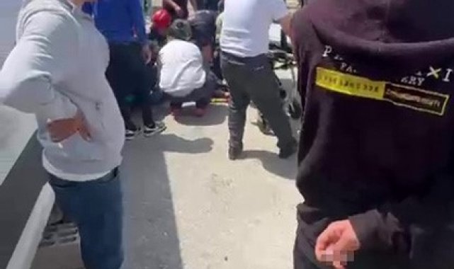 Antalya'da yol yapım çalışması nedeniyle daralan yolda önünde ilerleyen otomobile çarpan motosiklet sürücüsü kadın, karşı şeritten gelen minibüsün altında kaldı. İtfaiye ekiplerince yaralı olarak araç altından çıkartılan motosikletli, yaralı olarak hastaneye kaldırılırken, kaza anı güvenlik kamerasına yansıdı.