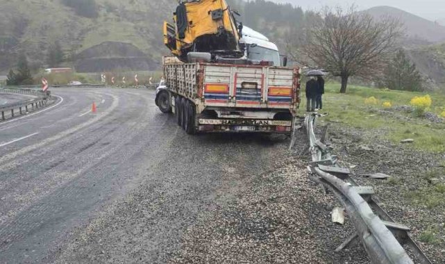 Elazığ'da dün meydana gelen kazada tır yoldan çıkarak şarampole girmiş, 1 kişi yaralanmıştı. Bugün, kaza yapan tırı yükleyerek yola çıkan tır da Diyarbakır karakolunda yoldan çıkarak bariyerle çarptı.