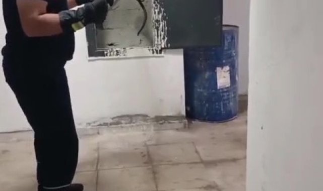 Hatay'ın Dörtyol ilçesinde bir apartmanın kazan dairesine giren yılan, itfaiye ekiplerince yakalanarak doğaya bırakıldı.
