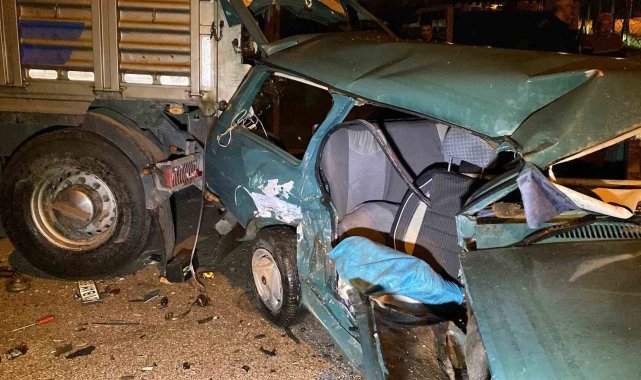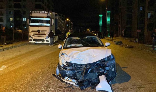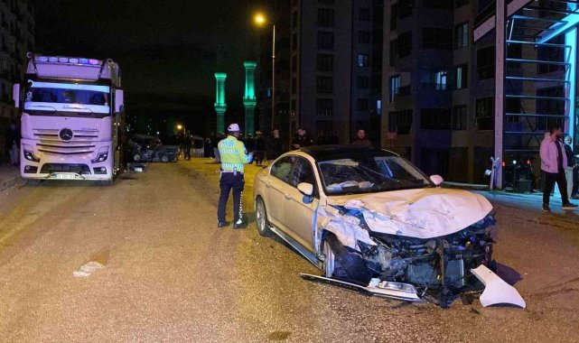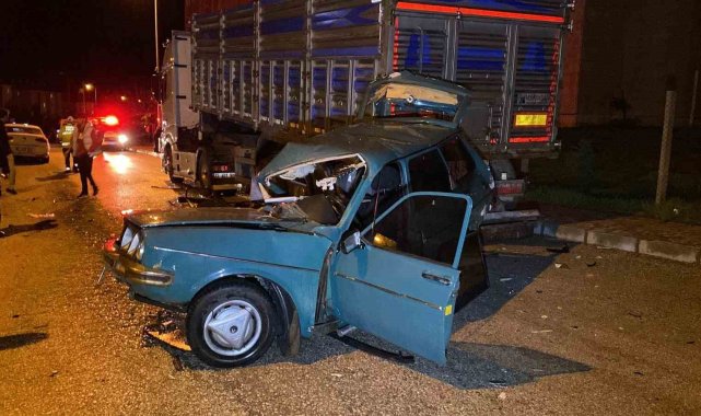 Kazaya karışan otomobil, park halindeki tıra çarptı: 1'ağır 4 yaralı