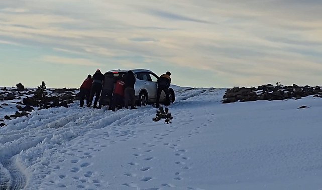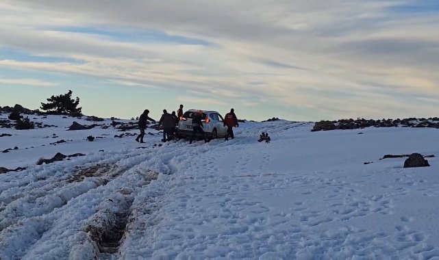 Kazdağları'nda bin 700 metre yükseklikte kara saplanan araç kurtarıldı