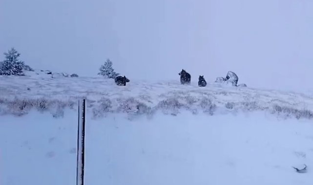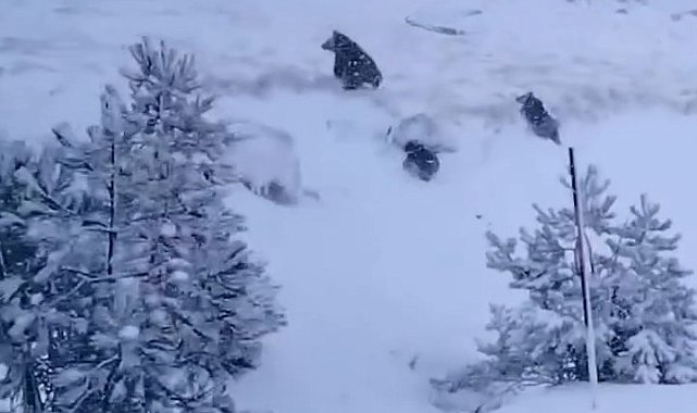 Balıkesir'in Edremit ilçesi sınırlarındaki Kazdağı Milli Parkı'nda, karlı zeminde koşturan bir ayı ve iki yavrusu, Doğa Koruma ve Milli Parklar Müdürlüğü ekipleri tarafından görüntülendi.Zengin bitki örtüsü ve hayvan çeşitliliği ile dikkat çeken, Kazdağları'nda etkili olan kar yağışı, bölgeye eşsiz manzaralar sundu. Kazdağları Milli Parkı sınırları içinde, yaklaşık bin 700 metre rakımlı Kartal Çimeni mevkisinde bir ayı ve iki yavrusu, karlı zeminde koşarken Doğa Koruma ve Milli Parklar Müdürlüğü ekiplerinin kamerasına yansıdı.Görüntülerde, ayı ve yavrularının koşarak ormanlık alana doğru uzaklaştığı görüldü. Karla kaplı Kazdağları'nda doğal yaşamın bu özel anı, izleyenleri hayran bıraktı. Görüntüler sosyal medyada büyük ilgi gördü.