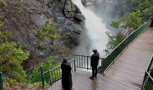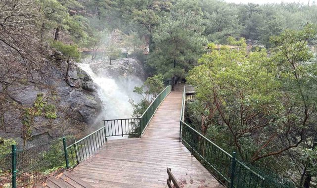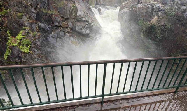 Kazdağları'nın Sütüven Şelalesi yağışlarla birlikte Niagara'yı aratmadı