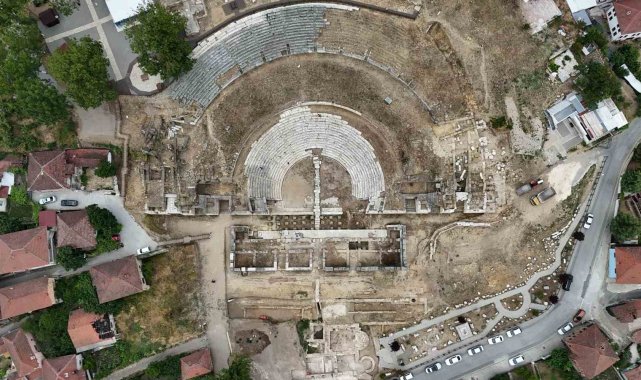 Düzce Belediyesi tarafından kazı çalışması başlatılan Konuralp Antik Tiyatro alanında Bizans döneminde Hıristiyan topluluğunun ibadetlerini yaptıkları şapel adı verilen küçük bir alan bulundu. Alanın devamında yapılan kazılarda ise büyük bir alan ortaya çıkmaya başladı. Alanın ibadet için kilise ya da dönemin protokol üyelerinin ağırlandığı bir alan olarak kullanıldığı tahmin edilirken, ne için kullandığı ilerleyen günlerde netleştirilecek.Düzce'nin Konuralp bölgesinde bulunan ve 'Prusias ad Hypium' adıyla da anılan Konuralp Antik Tiyatrosu, Batı Karadeniz Bölgesi'nin tek antik tiyatrosu olarak biliniyor. Bithynia Birliği'ni oluşturan 12 kentten biri olan Prusias ad Hypium'un M.Ö. 3. yüzyılda inşa edildiği tahmin ediliyor. Bizans, Roma ve Osmanlı imparatorlukları dönemlerinden yapıların bulunduğu alanda Düzce Belediyesi ve Düzce Üniversitesi iş birliği ile kazılar başlatılmıştı. Kazılarda çok sayıda eski dönem yapıya ve kalıntıya rastlandı.Son olarak ise Konuralp Antik Tiyatro'nun kuzey yamacında Hıristiyanların şapel olarak kullandığı küçük bir ibadethane bulundu. Yapılan kazılarda şapelin devamının büyük bir kompleks olduğu ve içerisinde ya büyük bir kilise ya da protokol üyelerinin ağırlandığı yapı olduğu tahmin ediliyor.Konuralp Antik Tiyatro'da Rehberlik Hizmetleri Sorumlusu Sanat Tarihçisi Raşit Aydın, "Burada şapel olduğunu düşündüğümüz ve önünde doğuya bakan bir apsis. Ancak burayı açtıkça ve güney tarafına doğru yapıyı detaylandırdıkça apsise benzeyen bir yapı daha çıktı. Yapı muhtemelen büyük bir komplekse benziyor. Şu an tam bir değerlendirme yapamıyoruz. Yan tarafında da mozaikli bir alan daha çıktı. Küçük mozaik parçaları ve yer döşemesine rastladık. İçinde şapel olan kompleks bir yapı olduğunu düşünüyoruz" dedi.Erken Bizans ya da orta Bizans dönemine aitSanat Tarihçisi Aydın, yapının erken ya da orta Bizans dönemine ait olduğunu düşündüklerini ifade ederek, "Küçük şapel olduğunu düşündüğümüz yapının erken Bizans olduğunu büyük ihtimalle düşünüyoruz. Çünkü hem malzeme kalitesi hem de duvar örgü teknikleri ile muhtemelen erken Bizans dönemine ait. Yapının devamının ise yüksek ihtimalle ya erken Bizans ya da Orta Bizans dönemi olduğunu söyleyebiliriz" şeklinde konuştu."Hıristiyanlığa geçiş döneminde yapıldı"Yapının büyük ihtimalle Bizans döneminde Hıristiyanlığa geçiş döneminde yapılmış olabileceğine dikkat çeken Raşit Aydın, "Bu yapı Hıristiyanlığa geçiş döneminde yapıldı diyebiliriz. Biliyorsunuz Roma İmparatorluğu pagan yani çok tanrılı bir dine mensuptu. Roma'dan sonra geçilen Bizans döneminde tek tanrıya ve Hz. İsa inancına inandıkları için Hıristiyanlık dönemi yapısı olduğunu düşünebiliriz. Bizans dönemi zaten bir Hıristiyanlık dönemidir. Şapeller de zaten Hıristiyanların ibadet ettiği yapılardır. Hıristiyanlığa geçiş döneminde yapılmış diyebiliriz" ifadelerini kullandı.Kazılar büyük ölçüde tamamlandıAntik tiyatroda kazılarında önemli bir mesafe alındığını söyleyen Aydın, "Tiyatro kazılarını yüzde 90-95 civarında bitirdik. Tiyatronun artık çok kazılacak bir yeri olduğunu söyleyemeyiz. Tiyatronun etrafındaki alanları kazıyoruz. Kafamızda oturmayan yerler var. Oraları netleştirmeye çalışıyoruz. Ama bunun dışında kalan alanın yüzde 95'ini kazdık. Bu şapel yapısı ve yanında devam eden kompleks yapının da ne olduğunu zamanla çözeceğiz" dedi.