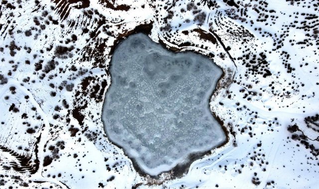 Erzincan Kemah'taki Ardos Gölü, kış mevsiminde tamamen buzla kaplandı. Drone ile görüntülenen bin 660 rakımlı gölün eşsiz manzarası, doğaseverleri kendine hayran bırakıyor.