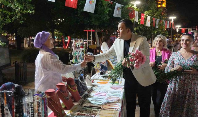 Antalya'nın Kemer ilçesinde düzenlenen üreten ev hanımları buluşması kapsamında meme kanserine dikkat çekmek amacıyla pembe karanfil dağıtılarak gökyüzüne 200 balon bırakıldı.