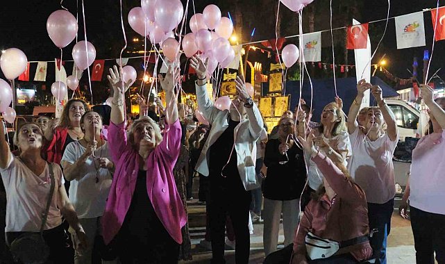 Kemer'de kadınlar gökyüzüne pembe balonlar bıraktı