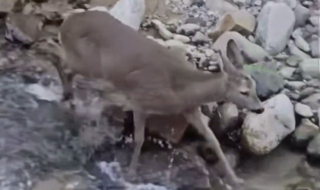 Kendini kurtarmak için dereye atlayan karaca vatandaşlar tarafından görüntülendi