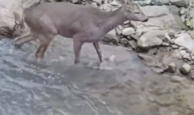 Zonguldak'ın Alaplı ilçesinde kendini kurtarmak için dereye atladığı düşünülen karaca vatandaşlar tarafından görüntülendi. Devrek ilçesinde de iki karacanın ormanda gezdiği anlar amatör kameraya yansıdı.