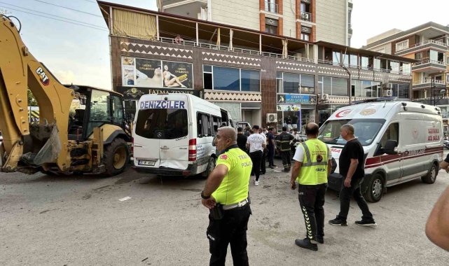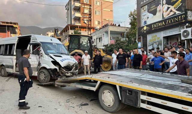 Hatay'da fren sisteminde arıza oluşan iş makinesinin ortalığı savaş alanına çevirdiği kazaya ait ortaya çıkan görüntüde, kaldırımda yürüyen vatandaşların ölümden saniyelerle kurtulduğu görüldü.