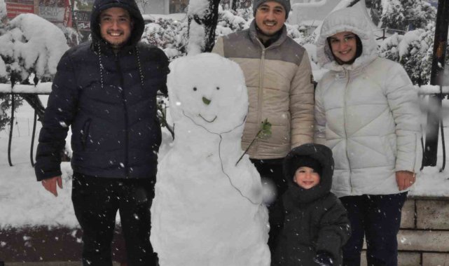 Keşan esnafı aileleriyle birlikte kar yağışının tadını çıkardı