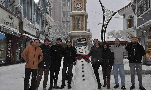 Edirne'nin Keşan ilçesinde yeniden etkili olan kar yağışı nedeniyle esnaf, aileleriyle birlikte iş yerlerinin önünde kardan adam yapıp kar yağışının tadını çıkardı. İlçeye bağlı bazı köylerde kapanan yolların açılması için çalışma yapıldı.