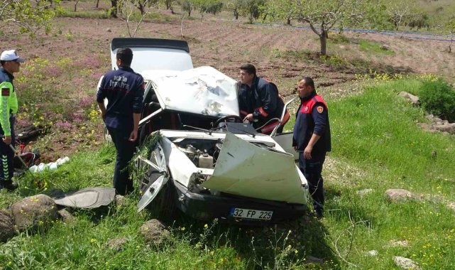 Kilis'te Elbeyli yolunda direksiyon hakimiyetini kaybeden sürücünün Tofaş marka aracı tarlaya savruldu, otomobil hurdaya döndü.