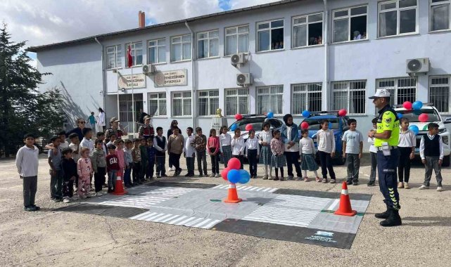 Kilis'in Elbeyli ilçesinde jandarma ekipleri, ilkokul öğrencilerine trafik kuralları hakkında bilgilendirme yaparak boyama ve hikaye kitabı dağıttı.
