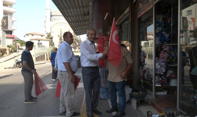 Kilis'te siyasi parti il başkanları, vatandaşlara Türk bayrağı dağıttı