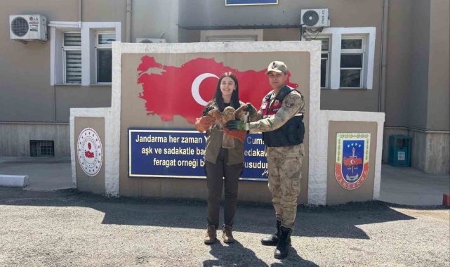 Kilis'in Merkez ilçesine bağlı Kocabeyli köyünde devriye görevi yürüten jandarma ekipleri, yaralı halde kızıl şahin buldu.