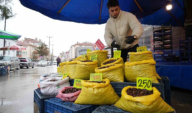 Bolu'da kış mevsiminin vazgeçilmez ürünlerinden olan kestane, bu yıl 100-300 TL arasında değişen fiyatlarla tezgahlarda yerini aldı. Ancak yüksek fiyatlar nedeniyle vatandaşların kestaneye olan ilgisi azaldı.Bolu'da her pazartesi İhsaniye Mahallesi'nde kurulan pazarda kış mevsiminin vazgeçilmez ürünlerinden biri olan kestaneye ilgi azaldı. Tezgahları süsleyen kestane, bu yıl 100 ile 300 TL arasında değişen fiyatlarla satışa sunuldu. Manav Enes Çelen, kestane fiyatlarının yüksek olduğundan dolayı müşterilerinin memnun olmadığını dile getirdi. Çelen, "Kestane alımı fiyat aralığı yüksek olduğu için müşterilerimiz beğenmiyor. Geçen seneye göre bayağı bir düşüş var ama müşterimiz fiyatlardan memnun olmuyor. Fiyatların düşmesini beklemiyorum, çünkü enflasyon gittikçe artıyor. Gelen zamlardan dolayı biz de mecburen fiyat yüksekliği koymak zorundayız. Bizi de kurtarmıyor bu fiyatlar" dedi."Kestanemiz bu sene az olduğu için gelmiyor"Kestanenin 100 TL'den başlayıp 300 TL'ye kadar değişen fiyatlarla satıldığını aktaran Çelen, "Boyut farkına göre Kastamonu, Bursa ve Aydın'dan gelen kestaneler var. Düzce kestanemiz bu sene az olduğu için gelmiyor. Aydın ve Bursa var genellikle. Çevre illerde kestanemiz az, bu yüzden elimize ulaşmıyor. Fazla olsaydı fiyatlarımız biraz daha düşük olurdu" diye konuştu.