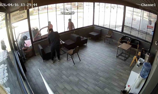 Kimse ne yaptığını anlamadı: Aracıyla etrafında dönen sürücü iş yerine çarptı