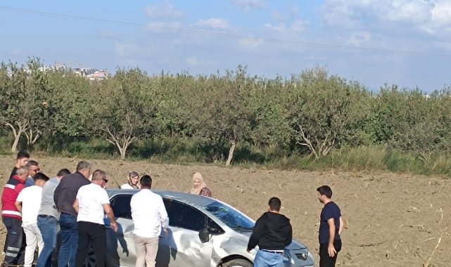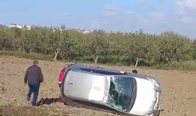 Hatay'da tarlaya uçarak yan dönen otomobilin sürücüsü hafif şekilde yaralandı.