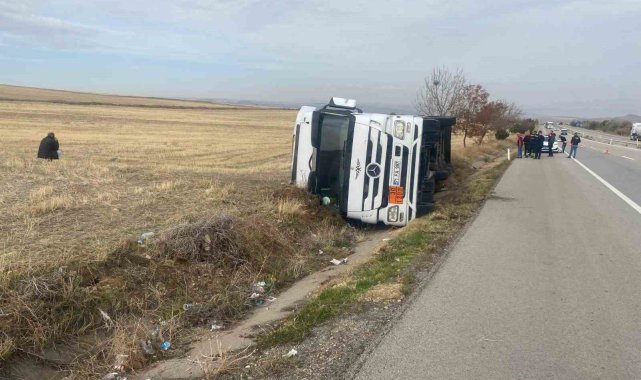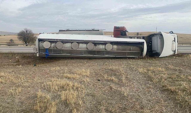 Kırıkkale'de, kontrolden çıkan akaryakıt tankerinin şarampole devrilmesi sonucu sürücü yaralandı.