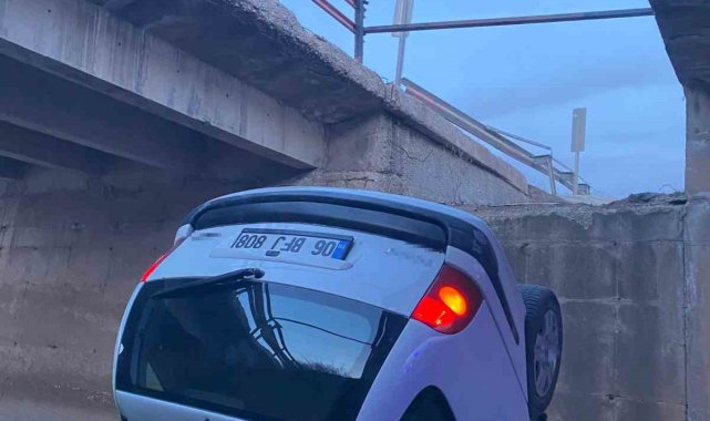 Kırıkkale'de kontrolden çıkan otomobilin köprü boşluğuna devrildiği kazada 4 kişi yaralandı.