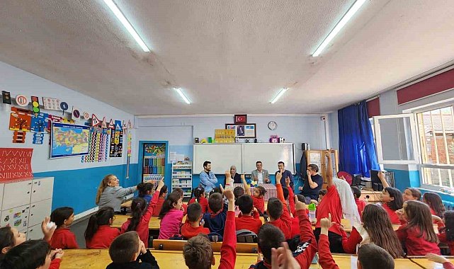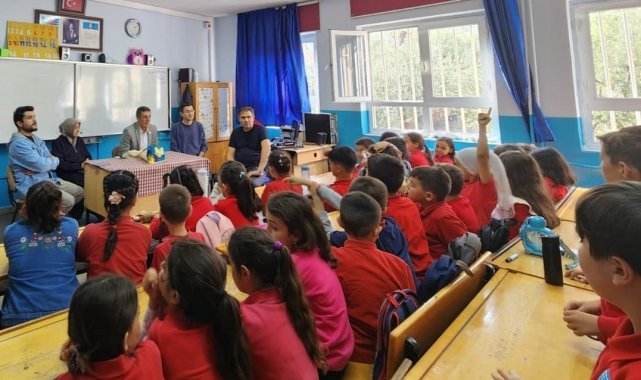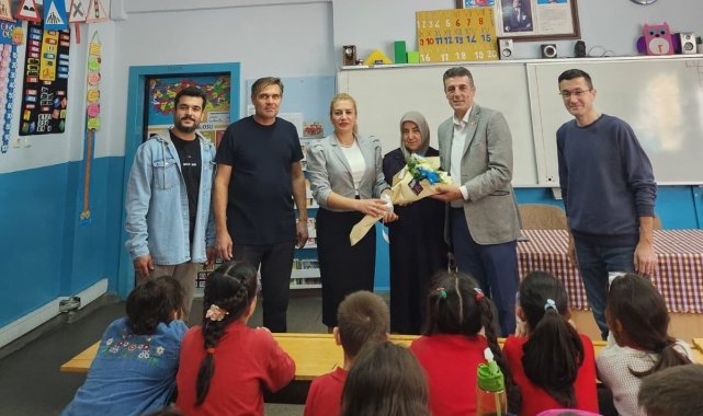 Kırkağaç Mehmet Günek Türkbirliği İlkokulu öğrencileri 19 Ekim Muhtarlar Günü olması dolayısıyla Kadriye Mahallesi Muhtarı Yasin Sarı ve eşi Ayşen Sarı'yı ağırladılar.