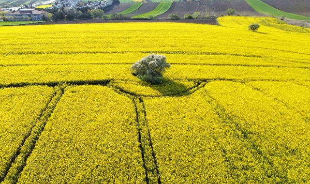 Türkiye'nin önemli tarım merkezlerinden biri olan Kırklareli'nde, baharın gelişiyle birlikte çiçek açan kanola bitkisi tarlaları sarıya büründü. Geniş arazilerde açan kanola çiçekleri, hem üreticiye umut olurken hem de doğaseverlere görsel bir şölen sunuyor.Trakya'da son yıllarda üretimi giderek artan kanola, yüksek verimi ve ekonomik getirisiyle çiftçilerin ilgisini çekmeye devam ediyor. Bitkisel yağ üretiminde kullanılan kanola, alternatif ürün olarak ekildiği bölgede buğdaya güçlü bir seçenek olurken, ayçiçeğiyle de rekabet eder hale geldi.Sonbahar aylarında ekimi gerçekleştirilen kanola bitkisi, kış aylarında gelişimini sürdürdükten sonra baharın gelişiyle birlikte çiçek açarak tarlaları sarı renge bürüdü. Yaklaşık bir ay boyunca çiçekli kalan kanola, bu süreçte bölgeye kartpostallık manzaralar kazandırıyor. Ürünün hasadının ise haziran ayında yapılması planlanıyor.Sarı çiçeklerle kaplanan kanola tarlaları vatandaşların da ilgisini çekiyor. Doğayla iç içe vakit geçirmek isteyenler, bu eşsiz manzarada bol bol fotoğraf çektirerek anı ölümsüzleştiriyor.