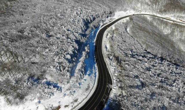 Kırklareli'nin yüksek kesimlerinde etkili olan kar yağışının ardından karın ve doğanın uyumu dron ile görüntülendi.
