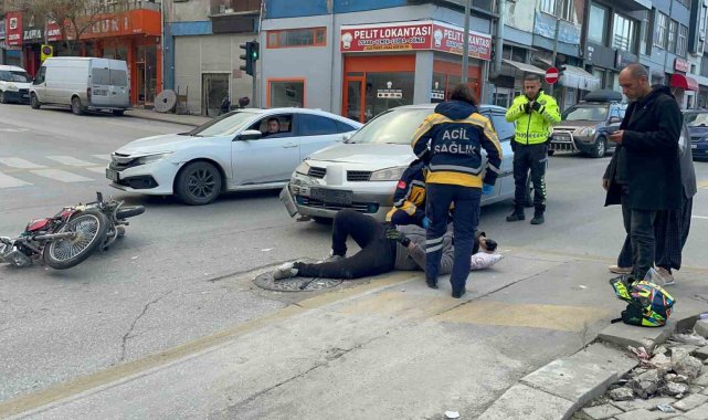 Kırmızı ışık ihlali yapan otomobil motosiklete çarptı: 1 yaralı