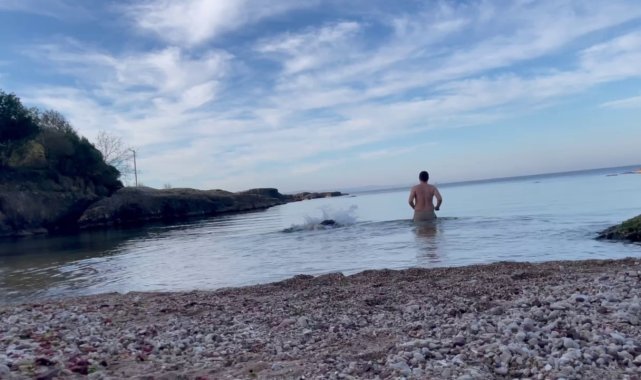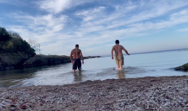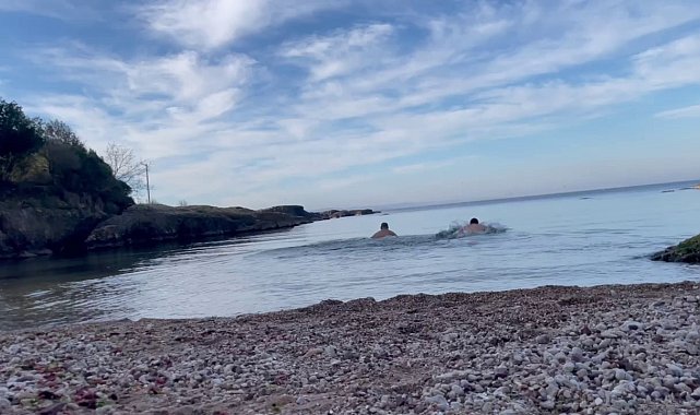 Sakarya'dan Kocaeli'nin Kandıra ilçesine giden iki arkadaş, deniz sezonunu erken açtı. Yeni yılda sağlık ve mutluluk dileyen arkadaşlar, kendilerini Ocak ayında Karadeniz'in serin sularına bıraktı.Hava sıcaklıklarının 20 dereceye yaklaştığı bugünlerde, Uğur Kurt ve arkadaşı, Sakarya'dan Kocaeli'nin Kandıra ilçesine gitti. Burada bir sahilde duran iki arkadaş adeta kış ayında yazdan kalma günler yaşadı. Deniz sezonu erken açan arkadaşlar, suya girdikleri anı cep telefonuyla kayda aldı. Denize girdikleri anları cep telefonuyla kaydeden Uğur Kurt, "10 Ocak 2025 denize giriyoruz. Herkese iyi ve sağlıklı seneler" diyerek Ocak ayında Karadeniz'in serin sularında kulaç attı.
