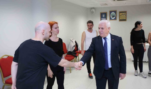 Bursa Büyükşehir Belediyesi Şehir Tiyatrosu, yazar John Steinbeck'in 'Kısa Süren Saltanat' adlı romanının uyarlamasını seyirciyle buluşturmak için çalışmalarını sürdürüyor. Başkan Mustafa Bozbey de sanatçılarla bir araya gelerek başarılar diledi.