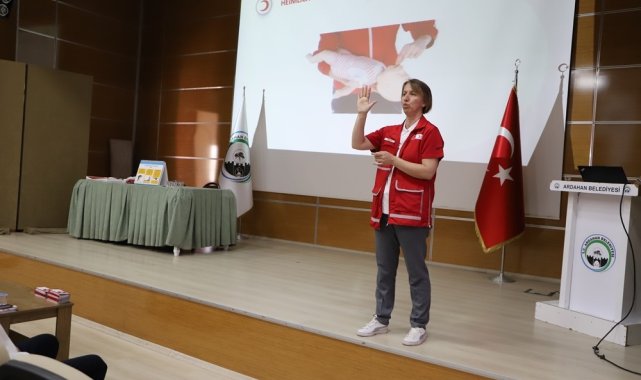 Türk Kızılay'ı tarafından Ardahan Belediyesi personeline ilk yardım eğitimi verildi.Türk Kızılay Derneği Ardahan İl Merkezi Başkanlığı ve Genel Merkez Uzman Ekiplerince, Belediye Konferans Salonu'nda düzenlenen seminerde belediye personeline 15 başlıkta İlk Yardım Eğitimi verildi.1 saat süren seminer boyunca özellikle temel yaşam desteği, kanamalarda ilk yardım, taşıma teknikleri, afet ve acil durumlarda, doğal yürüyüşlerde meydana gelebilecek durumlar gibi konulara ilişkin bilgi ve beceri geliştirme kazandırmak üzere verilen uygulama ağırlıklı eğitime Belediye Başkan Yardımcımız Seçil Avşar da katıldı.